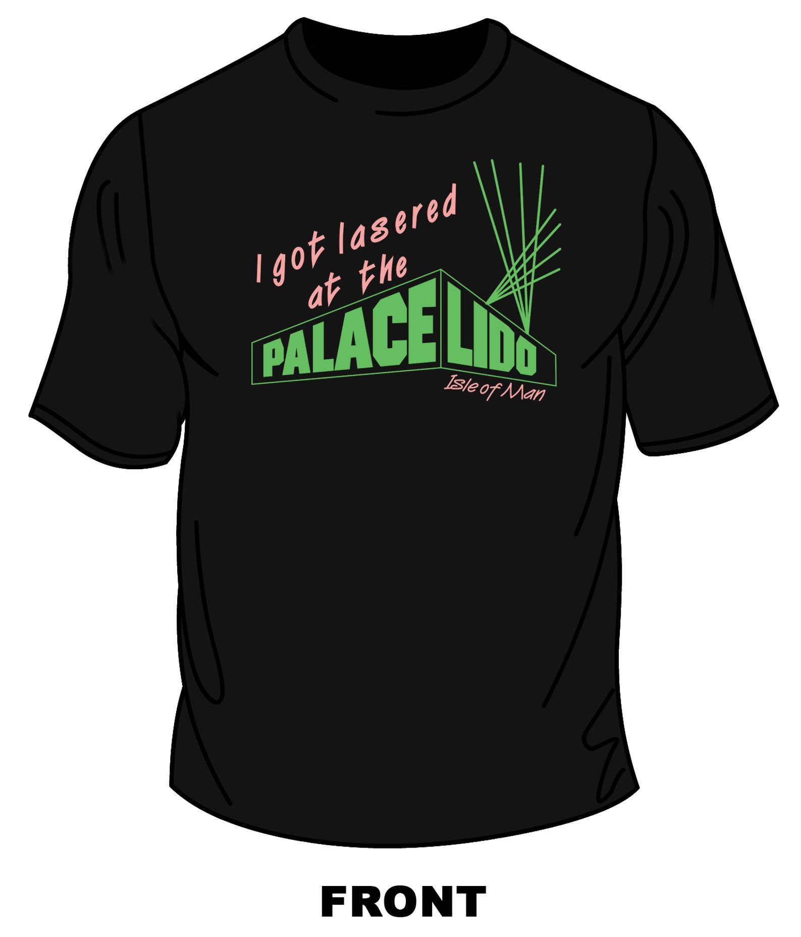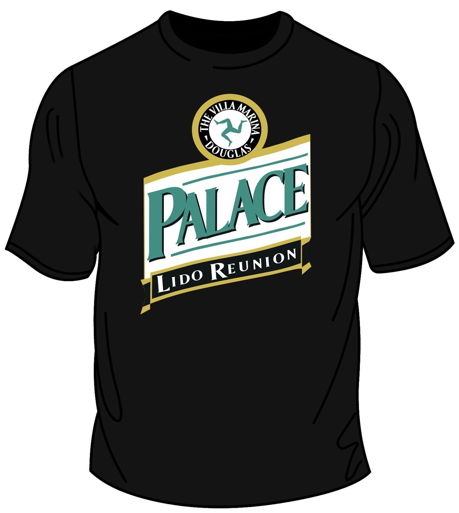 Palace Lido Isle of Man Souvenir T Shirts in Black. Sweatshirts are also available