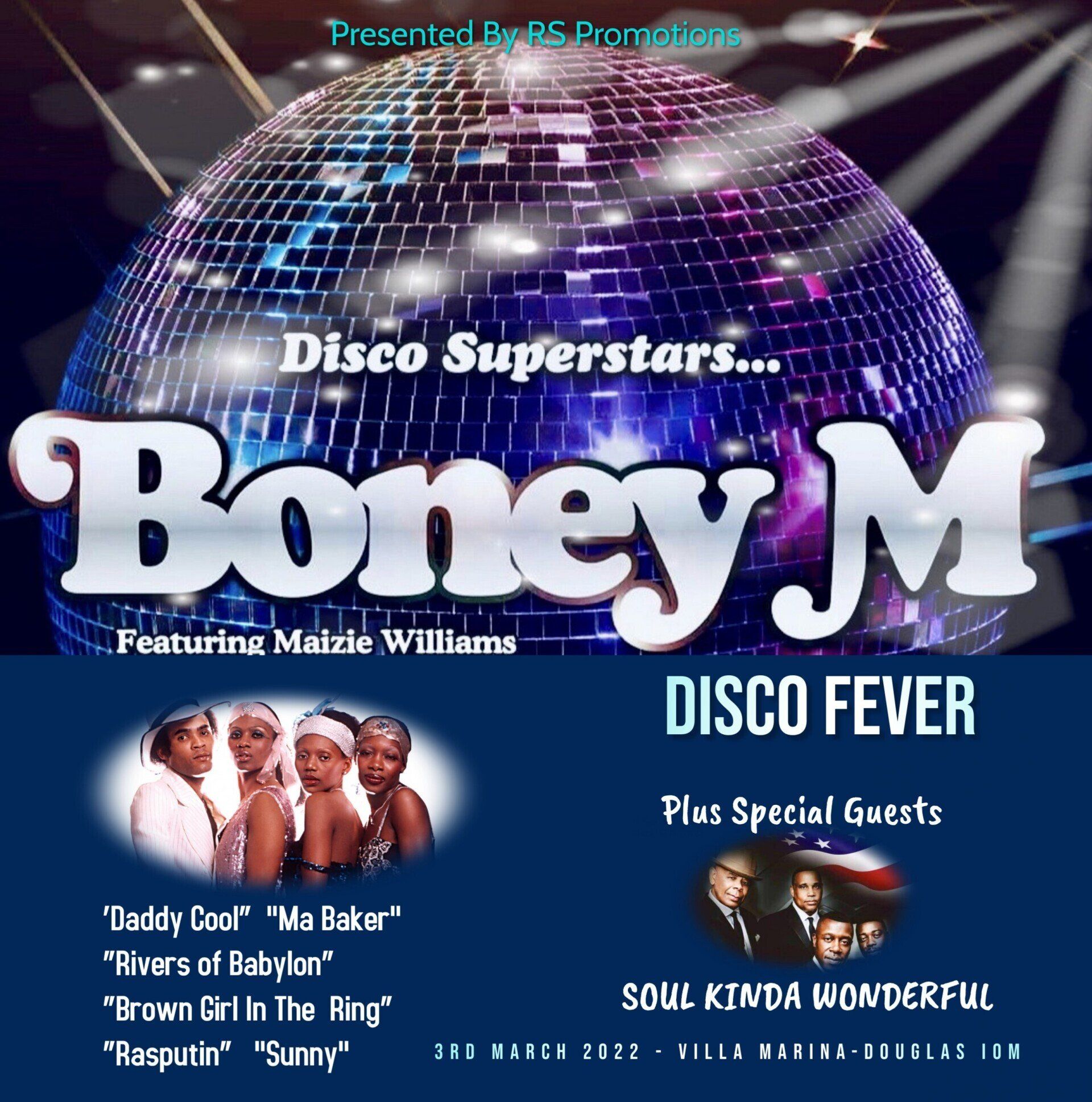 BONEY M. Featuring Maizie Williams PLUS Guests Soul Kinda Wonderful in Douglas,Isle of Man on 3rd March 2022 + Aftershow Disco